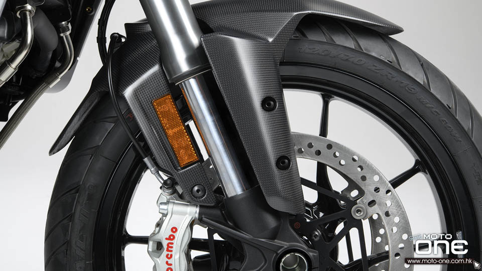 標準版 單筒尾避震,人手全調校功能 2 x 320 mm浮動煞車碟及Brembo M4煞車卡鉗 5吋TFT全彩液晶儀錶 裝備重量:240kg