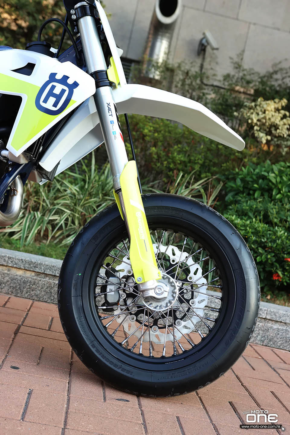 2021 Husqvarna FS450│純種SUPERMOTO落場版戰車 簡單從外觀一看,Husqvarna FS450沒有頭燈、前後指揮燈、尾牌架及完全沒有胎紋的SUPERMOTO賽車光頭胎,就可以知道此車並非街道行駛的型號,這全屬於賽道落場版的純種SUPERMOTO戰車的規格。FS450屬Husqvarna 於2015年推出闊別SUPERMOTO市場多年後的作品。於2020年Husqvarna FS450進行多項改良,再度提升這台戰車的戰鬥力。而2021年款改用全新拉,其他裝備大致維持不變。