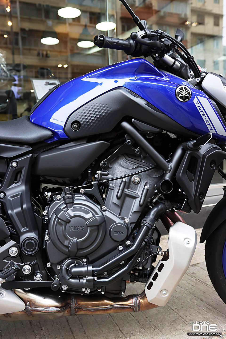 相對於以雄厚扭力見稱的MT-09來說,MT-07屬於一款由新手進階的NK車,但其實她的扭力表現同樣不俗。隨著新款2021 MT-09的造型大變,MT-07也仿傚MT-09,變得更機械人Feel,更有未來感,新設計的LED車頭大燈與新款MT-09的大燈有幾許相似,因為兩部車的車頭均以Y型為設計中心,油缸兩側的新設計三角型入風口同樣相似,然而新款MT-07的新油缸兩則加裝一對小風刀,使新車的肌肉感更強。
