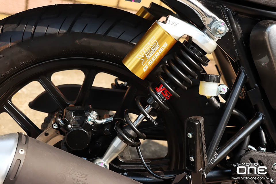 YSS雙筒油壓彈簧尾避震,可調預載。