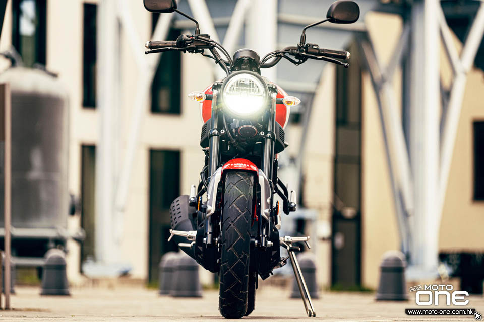 XSR125更配置37mm倒立前叉,Y型合金輪框與XSR155相同,車子也是配置街道/泥地兩用大格仔輪胎,以及配置267mm前煞車碟。