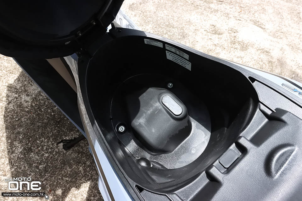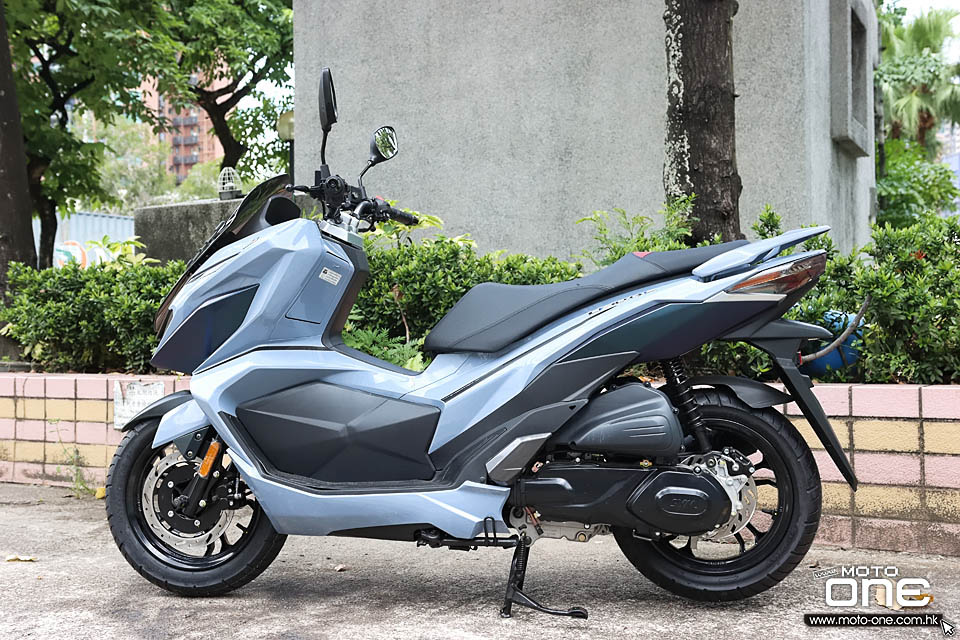 前後選用14吋鋁合金輪框,精美時尚的開合式鋁合金乘客腳踏,前260mm後220mm煞車碟配卡鉗掣動,雙筒尾避震備有3段預載調校。於駕駛艙左方設有實用的儲物空間,足夠放置一樽500ml至600ml的飲品,還備有USB充滿座,可放置智能電話及同時充電。精美的黑色座位中間有紅色壓有GPX圖案的設計,7.5L油缸入油處放於座位下,而座位下空間可以放置一頂開面頭盔。