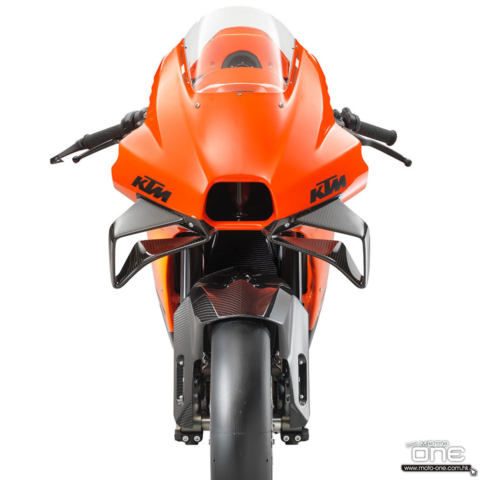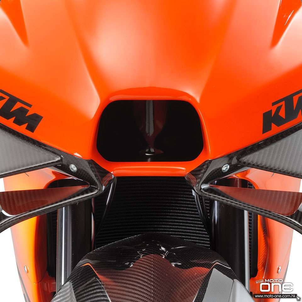 其實早年有位KTM德國工程師,離職後自立門戶,創立Krämer牌子,其中一部作品是GP2 890 R,配置KTM 890 DUKE的889cc水冷四衝程直2引擎,而編織型鋼管車架極具KTM特色,可以說是一部跟KTM淵源甚深的賽道玩具。事實上,KTM今次也不諱言與Krämer合作,共同開法RC 8C,但是包圍設計由KTM的MotoGP隊伍負責,因此RC 8C的造型與KTM MotoGP戰車-RC16十分相似,車頭更配置一對碳纖定風翼,以增加下壓力,而類似垃圾剷的搖臂擾流可以幫助輪胎散熱,又稱尾搖臂擾流,在近年的MotoGP戰車上同樣十分常見。
