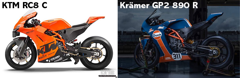 除了包圍之外,KTM RC8 C的結構及引擎與Krämer GP2 890 R相同。
