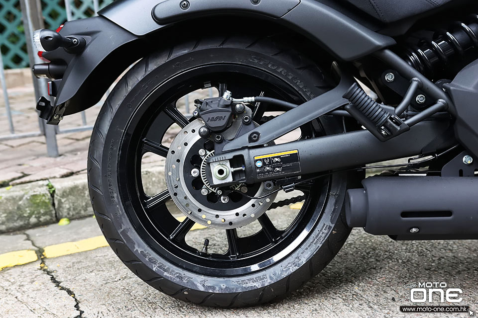 街車式的VULCAN S由於取自VERSYS 650的車架,因此保留了臥式的尾避震,配備長尾擔及更大傾角的前避震,結果是更長的1,575mm軸距,是典型美式巡航車的設定,而有更佳重心的中置式 排氣管設定卻十分罕見,這結構是源自VERSYS 650的車架設計。舒適性方面,闊軑把、又闊又低矮座墊不用多說,三段式可調前後位置的腳踏方便不同身高騎士尋找舒適的座姿駕駛。