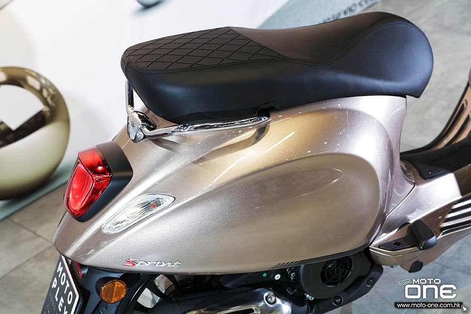 新款座墊皮紋亦重新設計,前標準的原皮配後方復古的斜方格壓紋,與前款橫紋不同,新款更有層次、更特別。今次最新的 2021 VESPA SPRINT 150 是符合歐5環保廢氣排放規格,所以排氣喉經過改良,排放廢氣及聲浪更低,而體積只是較前款略大少許而以,如不是現場新舊款同場比較,是不容易察覺的。