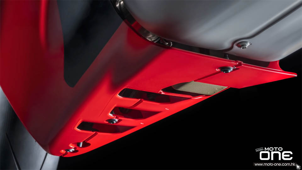 新款V4S的上截包圍與舊款相同,但工程師為肚兜兩則及兜底增加排氣槽,幫助高溫的V4引擎排走熱氣。