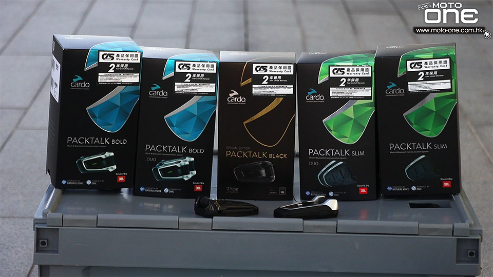 cardo分別有使用DMC(兼備藍牙)通訊的PACKTALK系列(上),以及只有使用藍牙的FREECOM系列(下)。