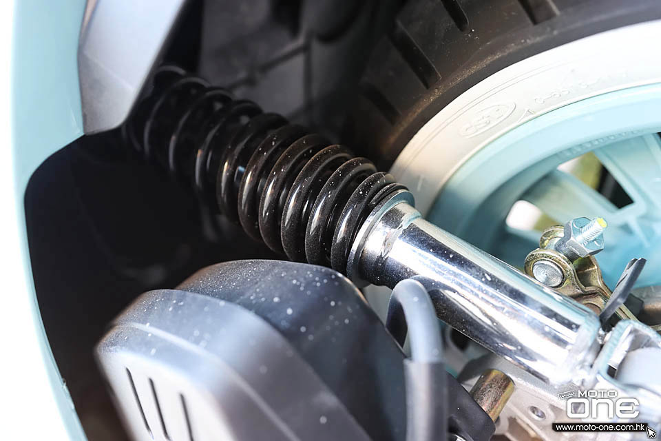 今次攝的的水湖藍為例,配色亦最為特別,前後輪框以相同水湖藍配色,更特別選用有白邊的前後輪胎,令外觀更別緻吸引,還有水湖藍備有同色的專用尾箱可供另行購買。至於鮮紅及黑色版則是前後銀色輪框,而前後輪胎亦是標準的全黑款式,亦沒有專色的尾箱。好明顯,水湖藍色得到廠方特別的照顧。