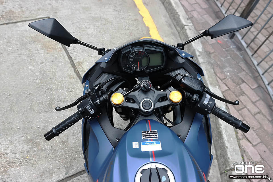 從儀錶上可看見紅區前高達17,000rpm,紅區極限更達20,000rpm,並且採用賽車式低軑把,並且有波段顯示。