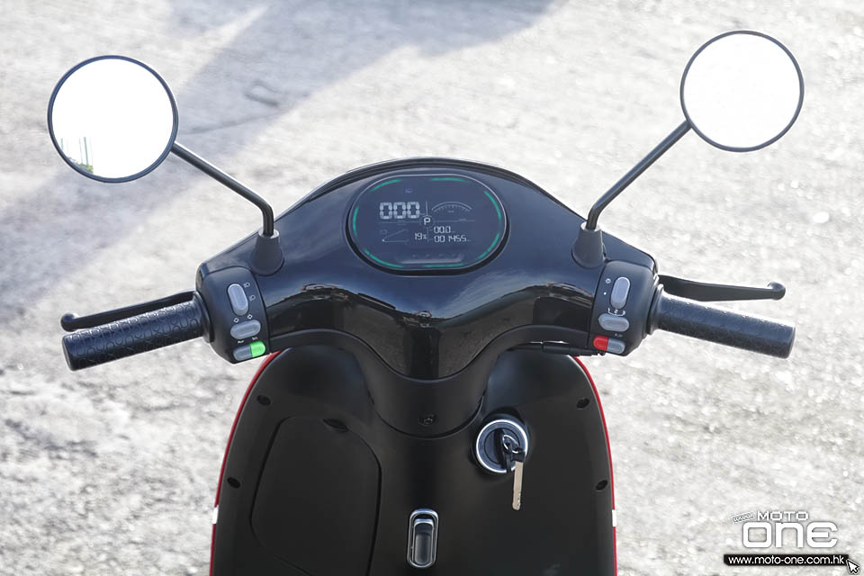 LCD大型時尚錶板 錶板備有速度、電流、今次里程、總里程、剩餘電量等等,顯示屏下方有觸屏滑動解鎖著車功能,配合KEYLESS無匙設計,著車、關車如滑動智動電話般,十分有趣。