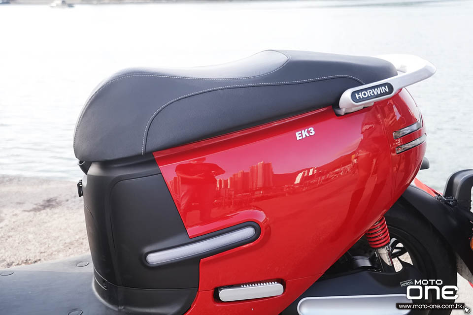 HORWIN EK3電動羊雙騎,座墊空間十分寛落,後座的CC後方,仍有不少空間。