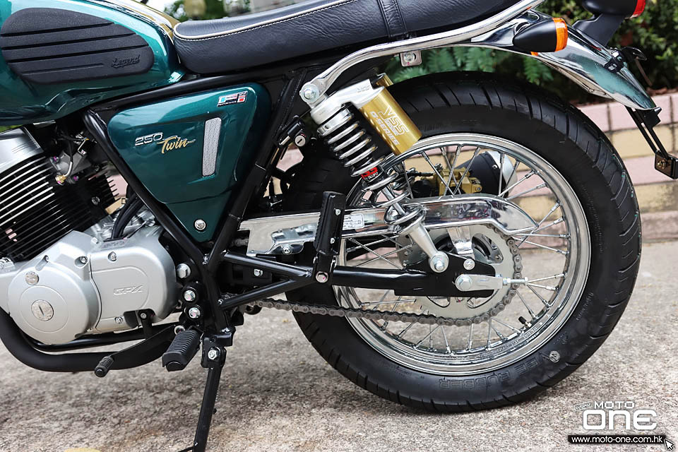 新款LEGEND 250 Brighton 換上前後電鍍鋼線輪框。