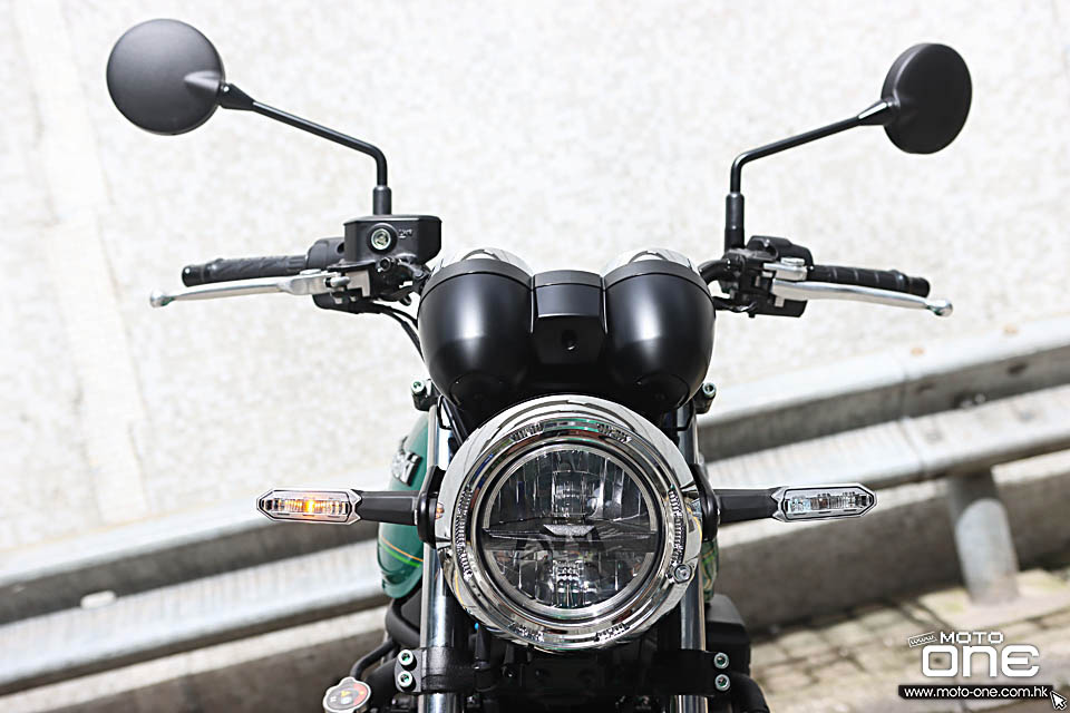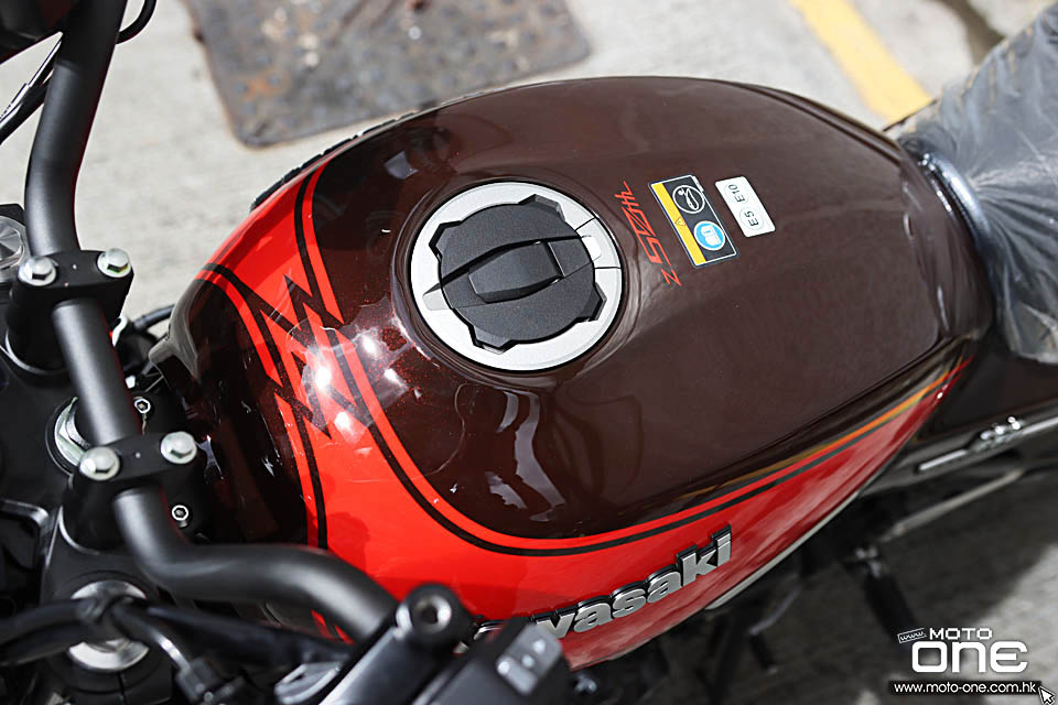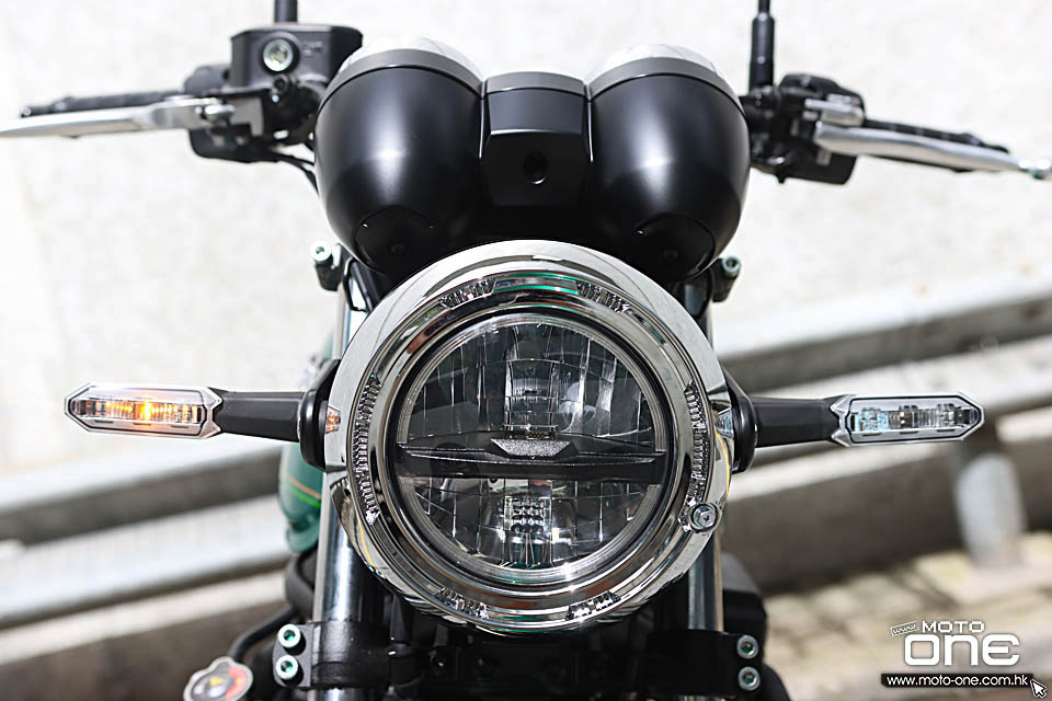 廠方為加強復古味,所以採用了大圓車頭大燈及雙圓儀錶,中間配以液晶顯示屏,既復古又現代化,車子採用了一對擁有鋼絲味的合金輪框,加上金碧輝煌的配色,使車子既有懷舊味道又不失高貴外觀;事實上,整體佈局跟Z900RS相同。