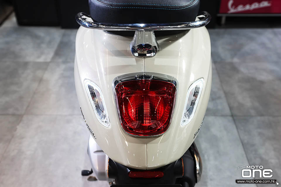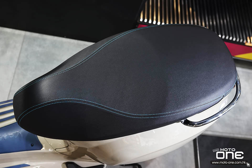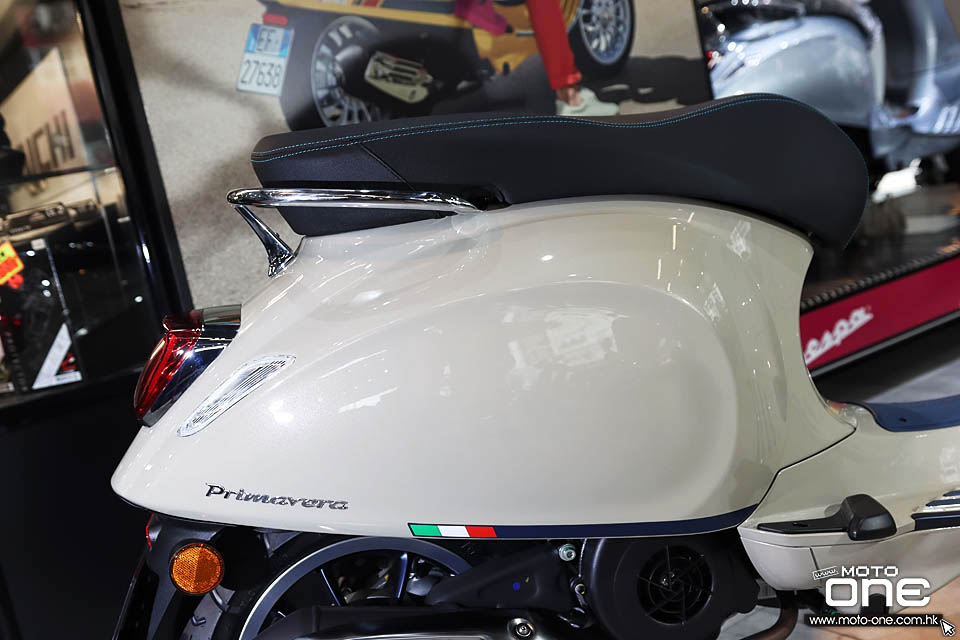 Primavera S 150 沙漠啡車身除外,還選用藍色加銀邊的前後輪框,藍色車身圍邊、藍色領呔位、藍色頭沙板飾件及藍色的腳踏板邊條,而座墊亦縫上藍線,另外車身蛋殼位置附有藍色線條拉花及綠白紅三色意大利國旗配色,這全是2022新色系的特色元素。