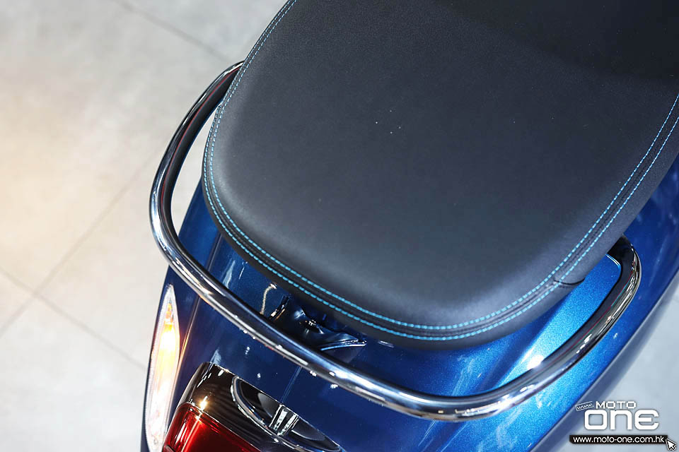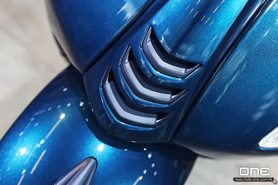 Primavera S 150 深海藍與極地白兩款2022最新色系有共同的特色,選用藍色加銀邊的前後輪框,藍色車身圍邊、藍色領呔位、藍色頭沙板飾件及藍色的腳踏板邊條,而座墊亦縫上藍線,另外車身蛋殼位置附有藍色線條拉花及綠白紅三色意大利國旗配色。