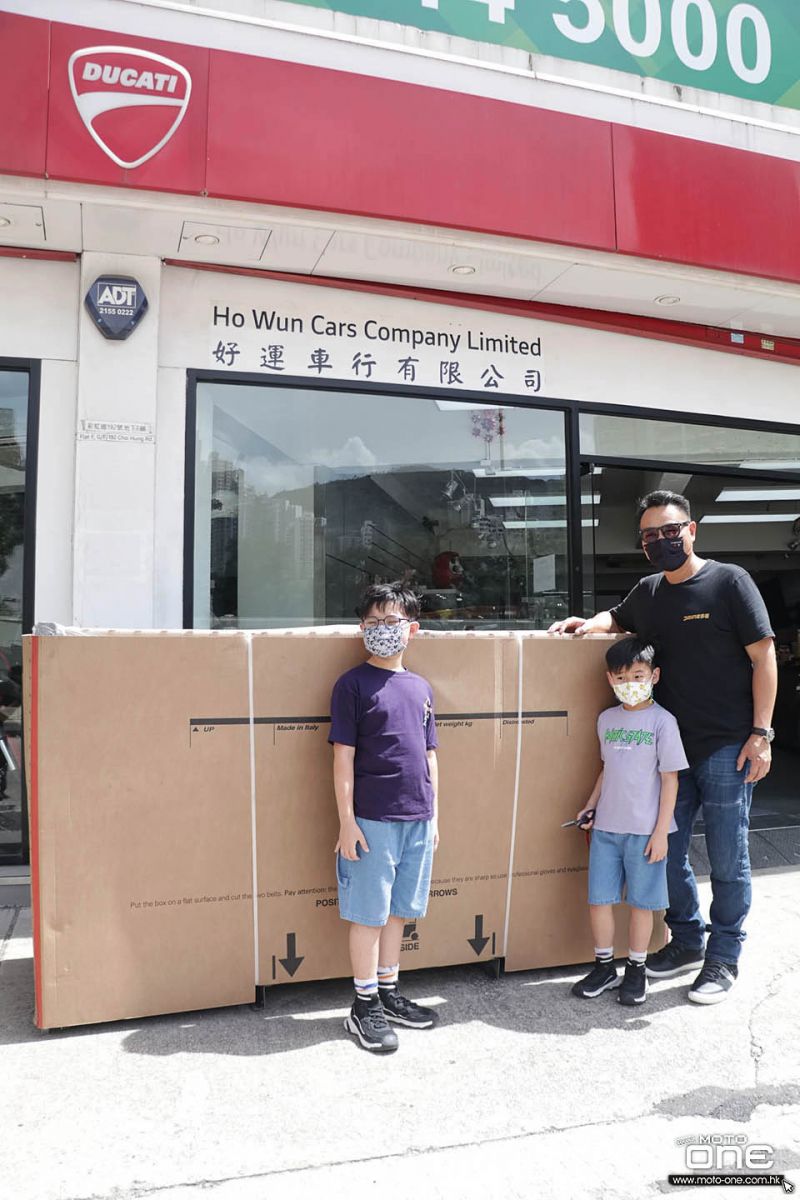 今次車主Kelvin連同兩名兒子、太太及邀請好友一同開箱慶祝新車抵港及開箱,兩位小朋友看到他們爸爸的大玩具箱下,顯得非常開心、活潑及富有新鮮感,比大人們更積極開箱,迎接PANIGALE V2 BAYLIS新車的來臨。