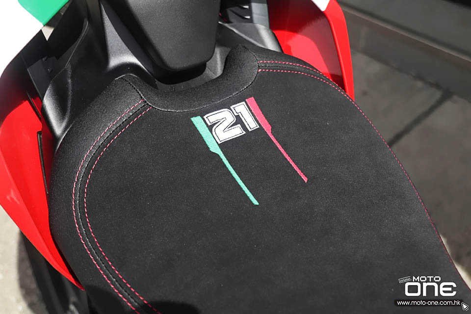 其它特別裝備還有精美扭油筒、排氣管碳纖外殼及繡上21號的特製座墊,油缸上更有拜尼斯(Troy Bayliss)親筆簽名,上眼鏡還有限量號碼,而煞車及離合器油壼改用最時尚的茶色透明油壼。