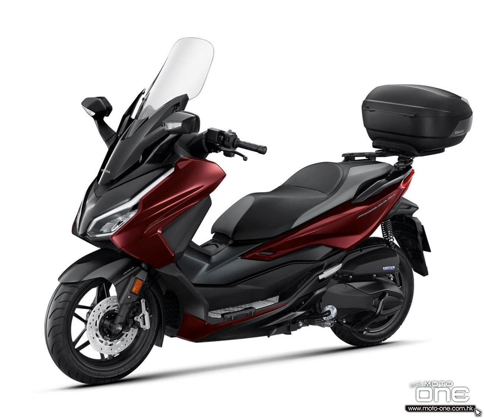 2023 HONDA FORZA 350 標準版備有Pearl Siena Red 珍珠意大利紅、啞面金屬灰、銀、黑、紅、藍等5色可供選擇。
