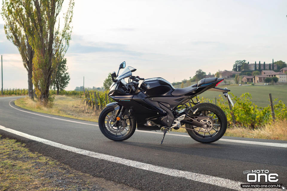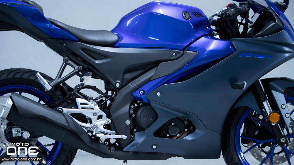 新款的2023 Yamaha YZF-R125採用全新的包圍及頭燈設計,車頭中央的M字型入風口、圓球形的LED大燈及左右兩旁的LED燈眉,而車身包圍擾流亦有所改良,尾包圍的中空擾流設計,完全由同系進階的YZF-R7移植過來,更賽車化、更有氣派。