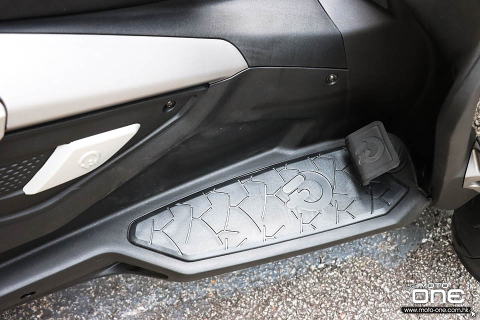前後輪胎四條同樣是110/80-14吋,而每條車輪均採用相對的240mm煞車碟配煞車卡鉗,即四輪四碟煞車,配備安全可靠的煞車效能。前後煞車手桿外,亦加入腳踏煞掣。選用跑旅級混合式儀錶板,備有夜間顯示模式,左速度、右轉數的雙圆錶板,中間備有的電子屏幕,有油量、行駛里數、時間及溫度的資訊。