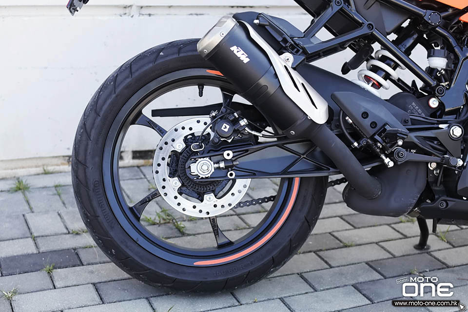 KTM廠方為此引擎重新寫過供油程式,風鼓容積更大,入風量增多了,今代亦改用了電子油門,起步反應與舊款分別不大,但是中、尾段加速,好明顯比舊款更快,加上今代選用更優質的避震,有預載及回彈調校。聽車主Aron稱沒有作出任何調校,編者試駕當天反而對避震印象最深,當壓落去時,感覺避震好似好軟,行慢車,它又可以吸到路面不平、爛路的震盪,一到高速時,又不會過軟,因為很多細車避震就算有得調校也好,一是太軟,一是太硬,對但於RC390的WP前後避震,相對來說十分全面,吸震效能漸進,真係沒有必要換避震,整個煞車系統強勁,扣下時減速反應理想,足夠此車使用,就算車速再快,原裝那對馬牌輪胎都夠玩。
