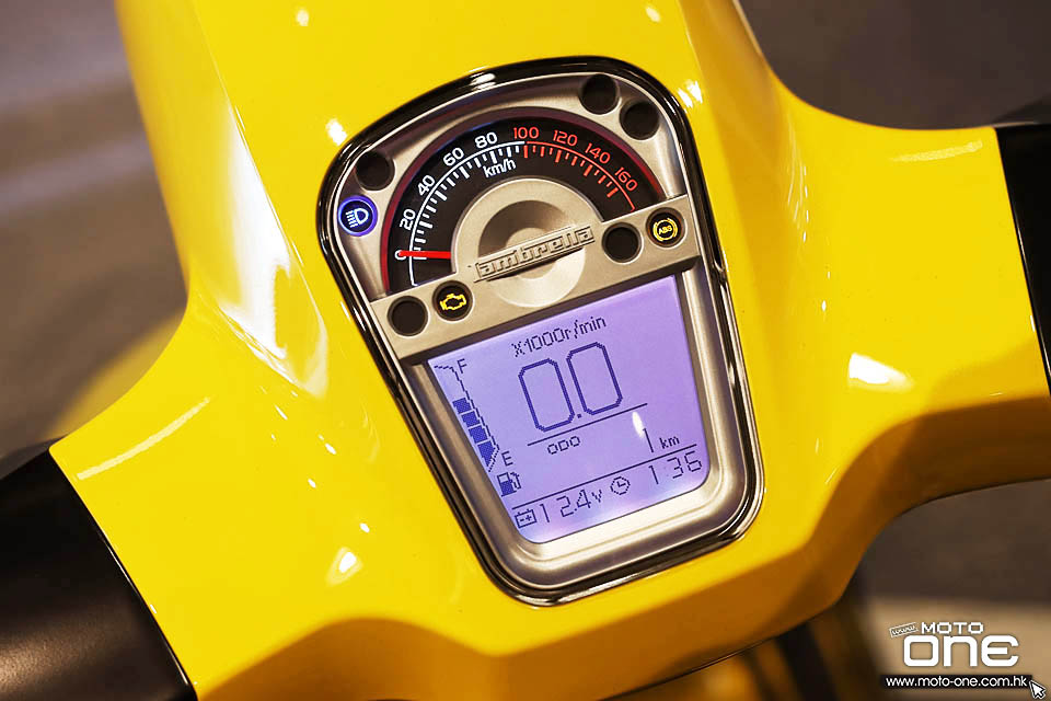 半圓指針速度錶加下方電子屏幕,有速度、油量、轉速、電壓、時間、行駛里數等實用顯示﹐而ABS防鎖死煞車系統的顯示燈則在間右方的小圓內。