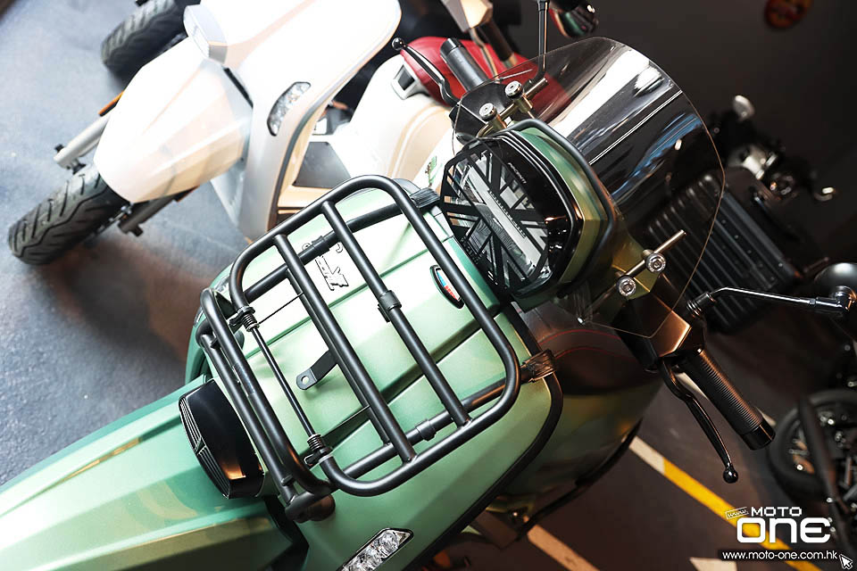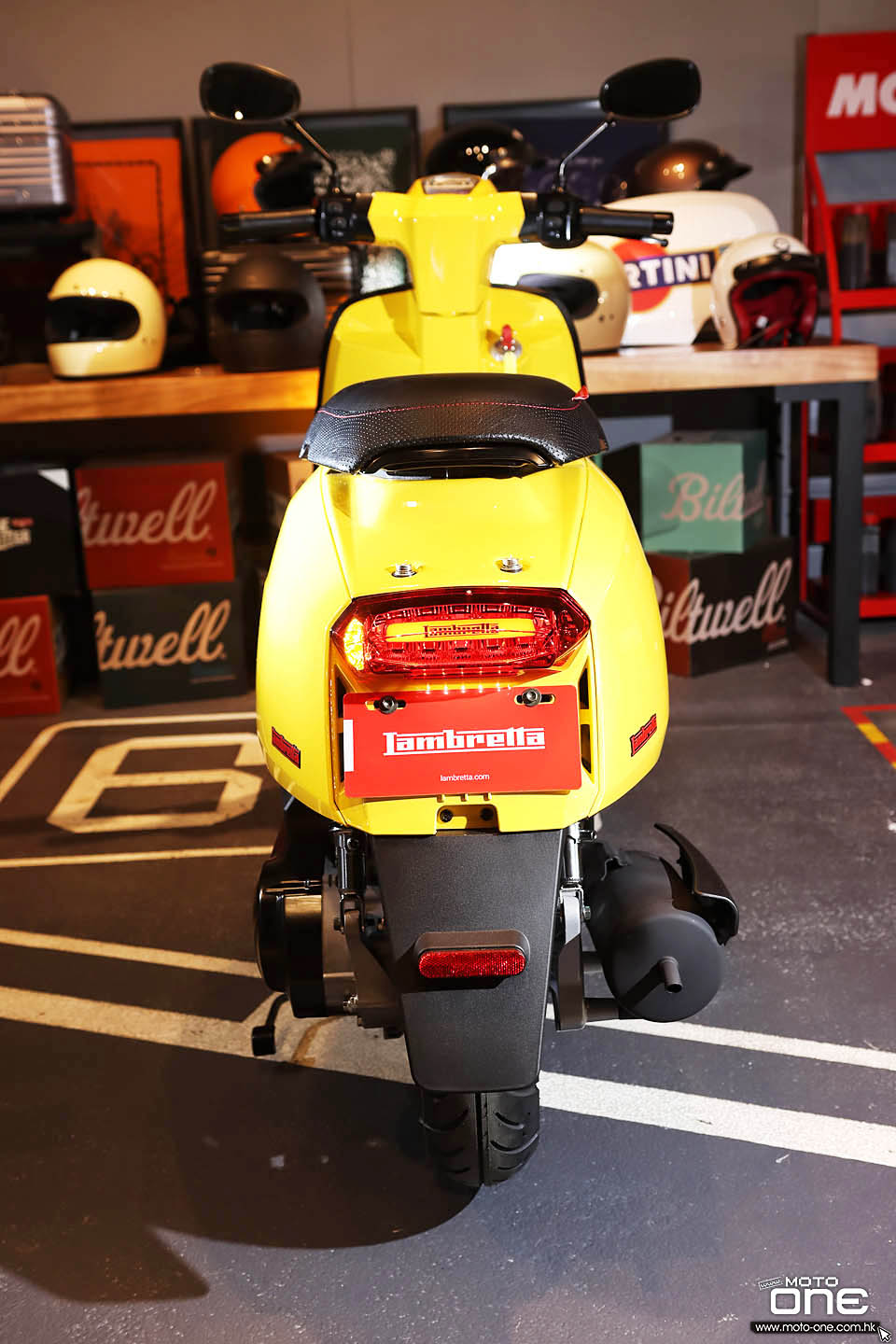 2023 黃、綠及黑色均配上黑化的部件、車邊條及黑色座墊,而白色則配上銀色部件、車邊條及棗紅色座墊,因應不同車身顏色而配搭。 LAMBRETTA 復古的扭油筒。