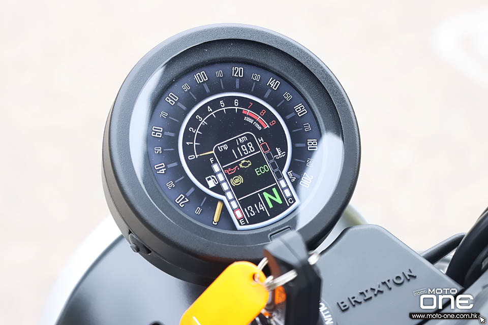 所以BRIXTON車系的造工絕不失禮,細緻度也反映造車誠意。本誌較早前也試過125cc及500cc的BRIXTON CROSSFIRE復古街車,駕駛感雖說不上很特別,但是扭油縮油、拿極力子入波,整個操控十分暢順,就算騎士在操控上稍有失誤,車輛亦比較包容,令騎士很容易控制車輛。