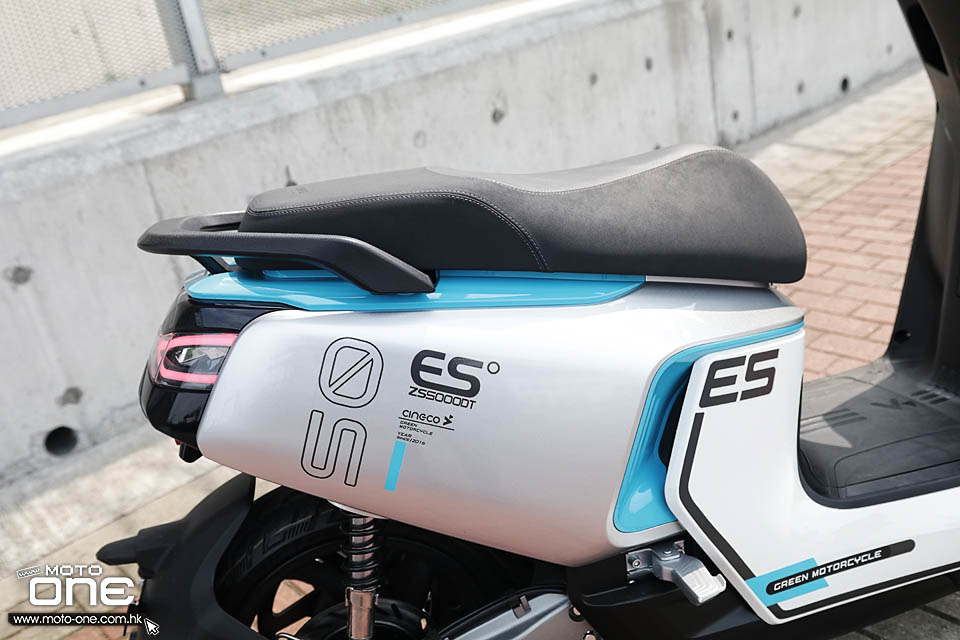 先跟大家簡介她的來歷,車子由重慶宗申車廠製造,這間車廠屬於國內一線車廠,她們生產的車輛有不錯的質素。2016年,宗申創立"CINECO森藍"品牌,專門生產電動車,這款電車叫ES5,可是今次來到香港的車子屬於樣板,所以欠缺部份功能,如果以造工來說,確實沒甚麼好挑剔,整體來說很漂亮,這款車採用沒有龍骨的鋼管車架,因此騰出建立平地台的空間,提升了實用度。後面使用鋁合金後搖臂,十分粗壯,大大提升車子的質感。