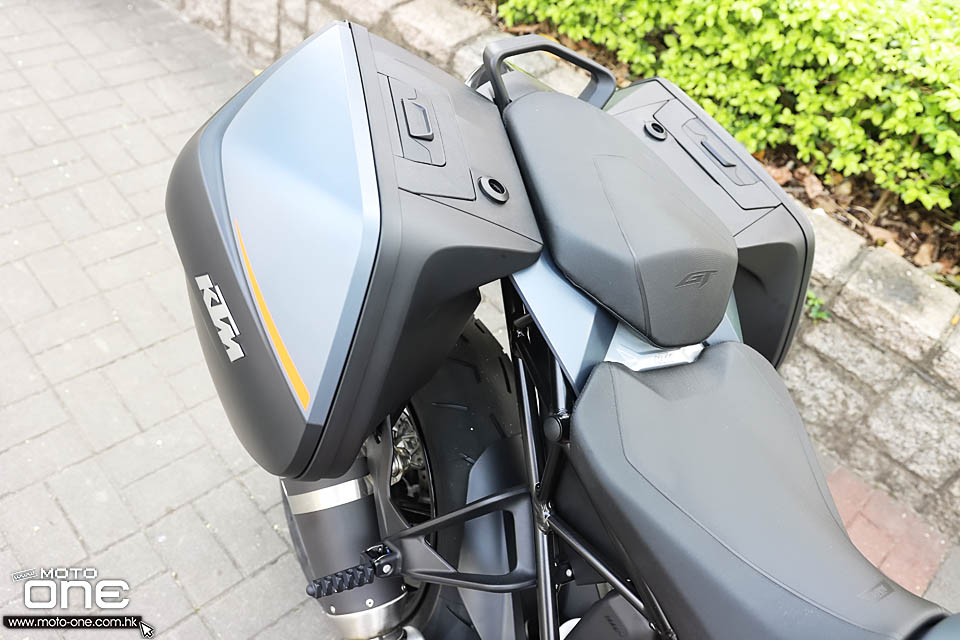 座位高度 835mm 符合後座人體工學設計的KTM原廠邊箱。