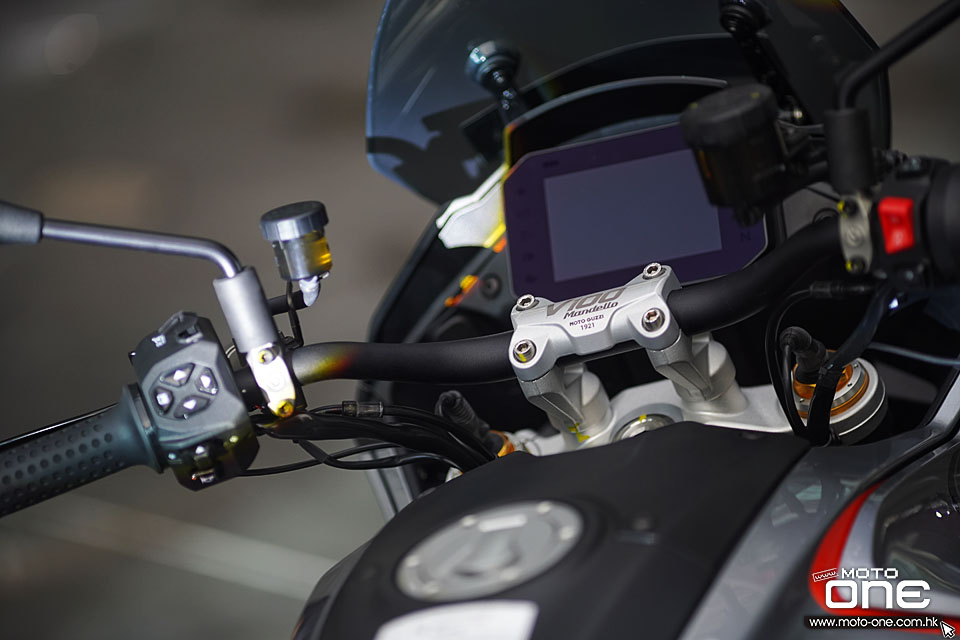 除此之外,S版配置快排,騎士無須扣離合器便可升檔及退檔,在滑離協助下,退檔的引擎煞車(Engine Brake)產生的窒動感相當輕微,拖波好順暢。S版還有Moto Guzzi MIA系統,騎士使用手提電話連接車輛後,可在S版的5吋彩色TFT屏幕上展示導航、來電及控制歌曲等等。