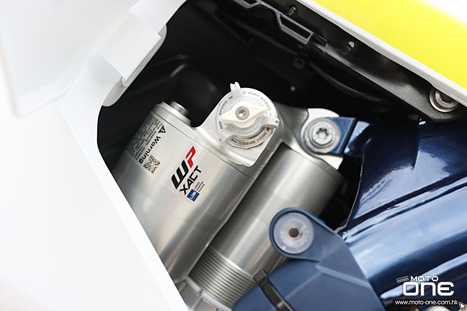 全新WP XACT尾避震比上一代款式輕了100g及短了15mm,但行程仍保持300mm不變。可免工具快速輕鬆調較回彈、高低速下縮,當然亦有無段絞牙的預載調校,全方面調較。尾避震配備優化的減震活塞,低摩擦密封組件及經過改良的連桿系統,可確保一致的回彈、吸震及舒適效能。