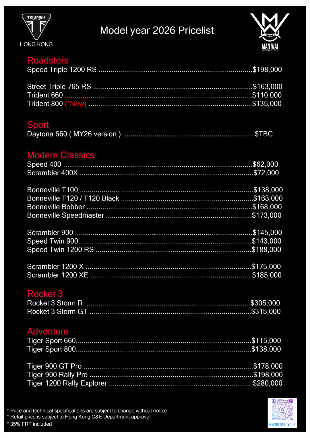 ![]() 2025 Triumph Trident 660 升級復古三缸街車 紅色及黃色新拉花抵港 |