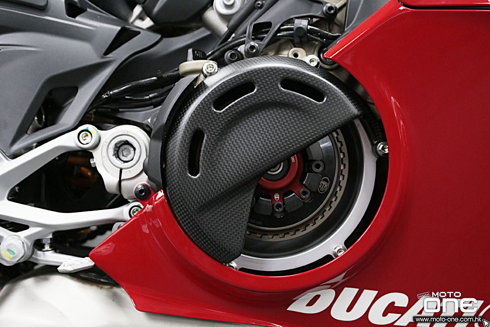 乾式離合器Panigale V4 R 配備了源自 Ducati WSBK廠隊使用的乾式離合器。與其他 V4 車款使用的離合器相比,其直徑及軸向長度均有所縮減(縮短 24 毫米),而且重量減輕了約 1.8 磅(800 克)。