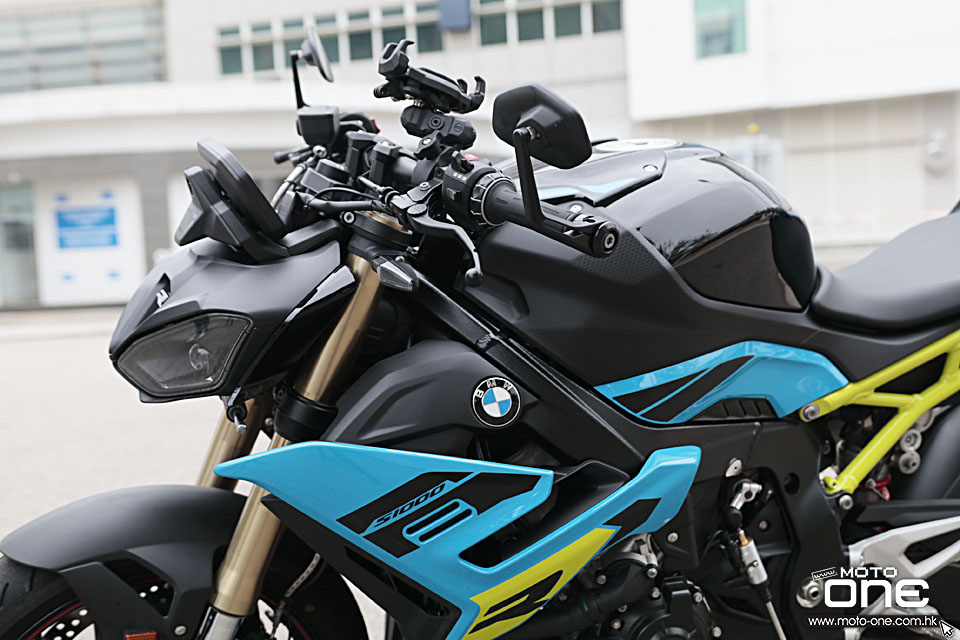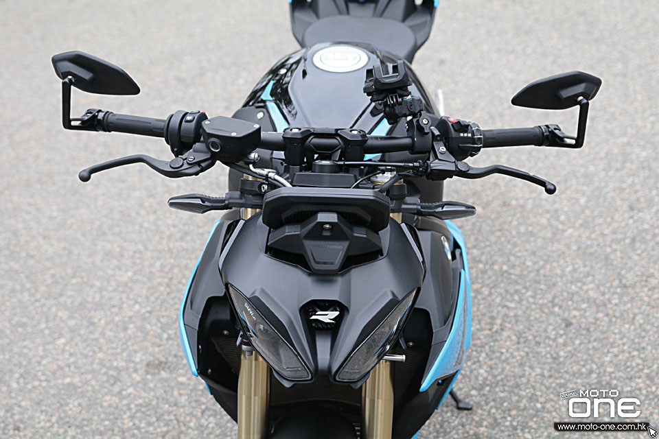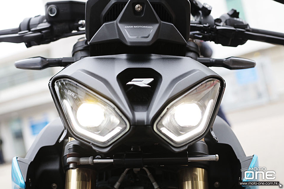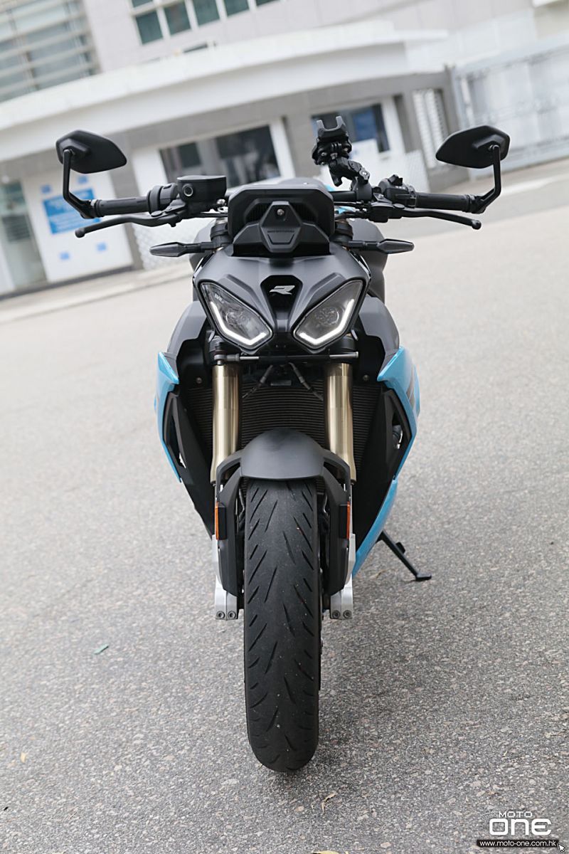 今次是我第一次試駕 S1000R,之前的舊款我並未接觸過。新款外觀方面,主要換上 LED 頭燈,水箱兩側包圍亦重新設計,同時加入無匙啟動系統。前後懸掛均為電子避震,預載則需手動調校,車輛亦配備六軸 IMU 收集動態數據,基本上現時高階電單車應有的電子裝備,它都一應俱全,車頭下方亦設有釘把。