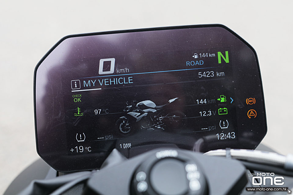 儀表方面採用 6.5 吋彩色 TFT 螢幕,駕駛模式包括 Rain、Road 及 Dynamic,原廠已預先設定妥當;另有 Dynamic Pro 模式,可讓騎士進一步微調循跡控制、ABS、防翹頭等設定。模式切換按鍵設於手把上,行駛途中亦可隨時切換,操作十分方便。
