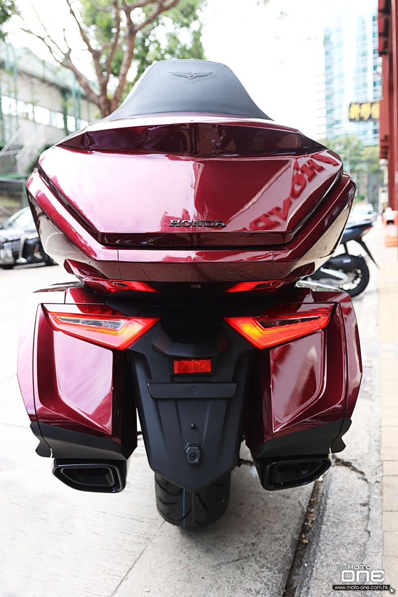 2026 Honda Gold Wing Tour Airbag DCT 50週年紀念版 - 金屬紅色抵港 不論是新款或舊款 Honda Gold Wing,但凡在街上行駛,都必定吸引大量市民目光;無他,像航空母艦的車身及豪華裝備,無論你是不是電單車車迷,都會感到好奇,見到都會望多兩眼,而 Gold Wing 亦是電單車史上其中一部最矚目的作品。Honda 為慶祝旗艦旅行車 GL1800 Gold Wing 誕生 50 週年,推出了 50 週年特別版,分別有永恆金及金屬紅兩款配色可供選擇,繼上年抵港的永恆金款式開箱後,經典的金屬紅色日前亦抵港,售價為港幣 $308,000。
