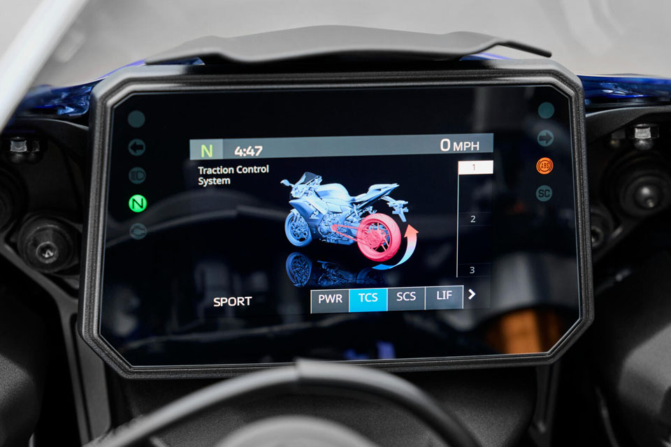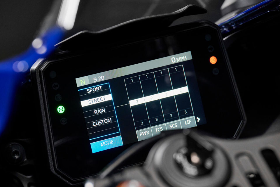 四種顯示畫面讓資訊一目了然,其中包括專為賽道設計的「Track 模式」,優先顯示單圈計時器等資訊。此外,透過Yamaha的MyRide電話App,可使用導航、訊息通知及數據分享等功能。