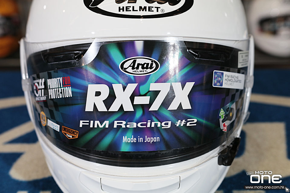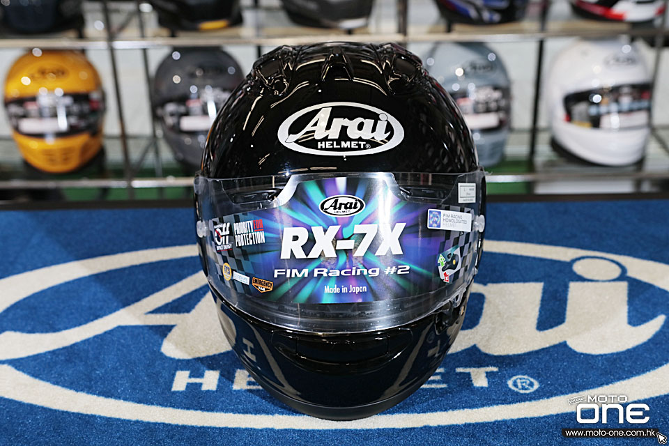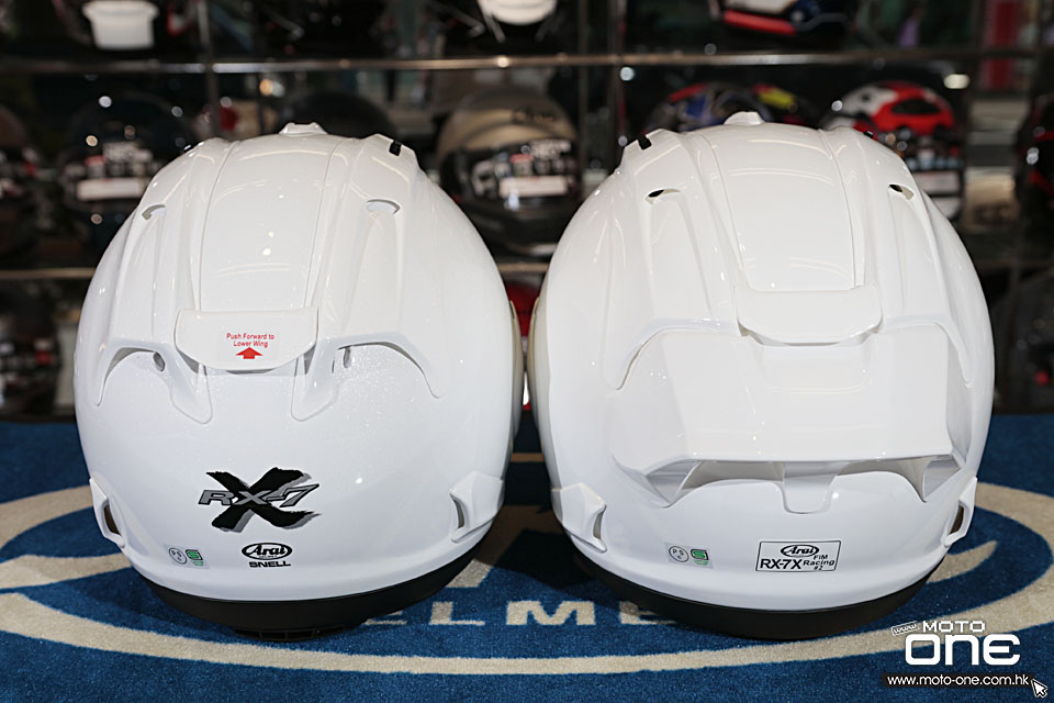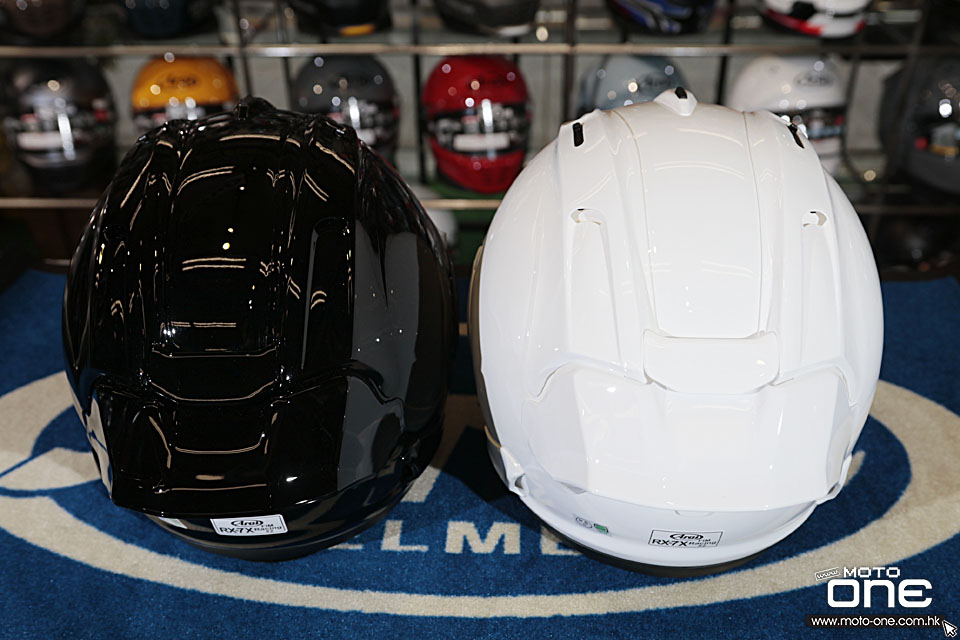 ARAI 最新的 RX-7X FIM RACING #2賽車頭盔到港,原裝已附有尾擾流板,無需另購,並有黑與白兩色可供選購。