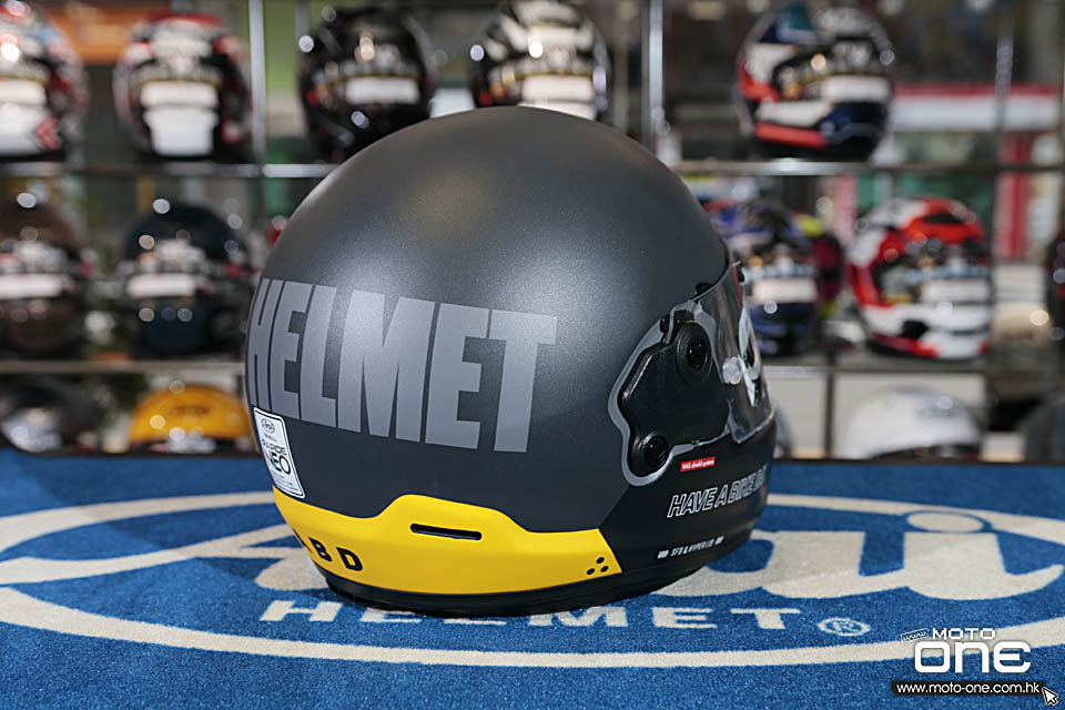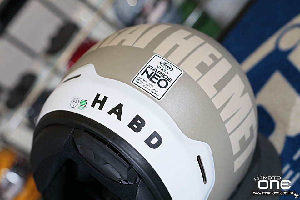 配色方面,今次相片所見有兩款主調,一款採用淺灰配白色下擺,感覺較柔和清爽;另一款則用深灰配鮮黃色下擺,對比更強烈,視覺效果亦更搶眼。兩款都配合啞面質感處理,令整體觀感更有質樸味道,十分切合 RAPIDE-NEO 這類 neo classic 全面頭盔的定位。整體而言,這款 HABD 拉花特色在於字體設計鮮明、配色簡潔有性格,低調之中又有很高辨識度。