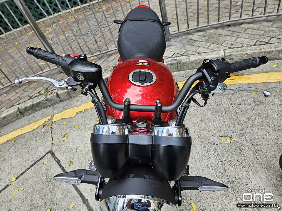 復古型圓型倒後鏡,闊軑把,可預視能為騎士帶來舒適座姿。