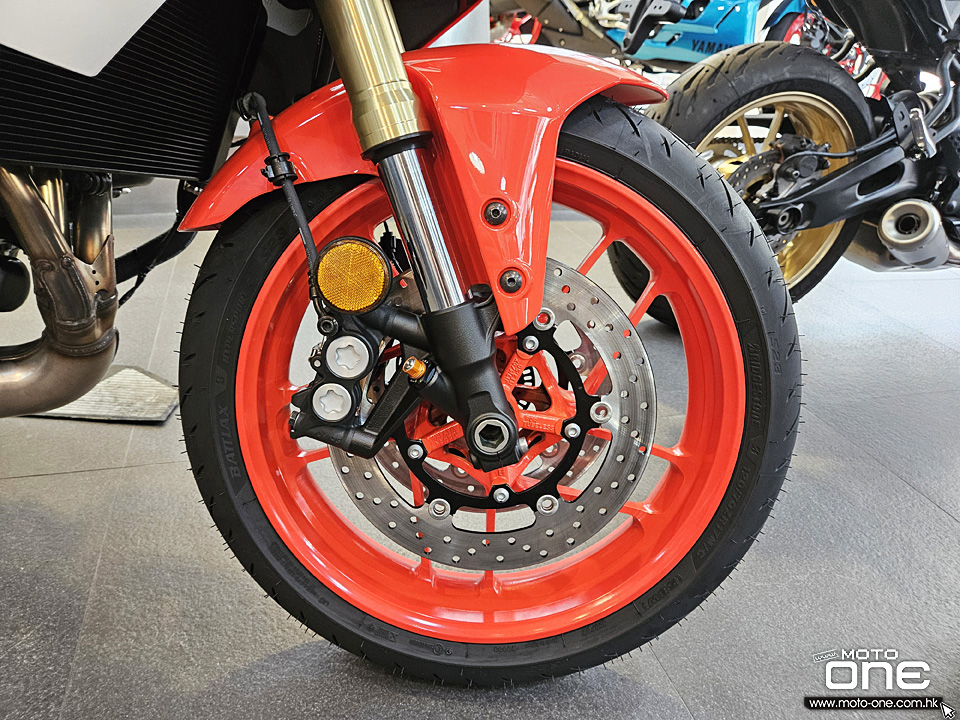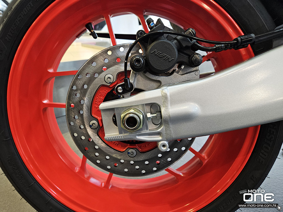 電子功能包括SPORT、STREET、RAIN及兩個自定馬力模式,TCS循跡系統、SCS(側滑控制)、LIF車頭升起控制及賽車式ABS。
