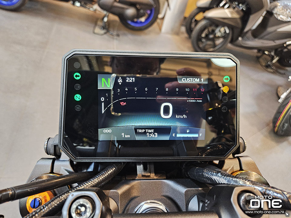 MT-09 SP版配備的5吋全彩TFT電子儀表提供5個不同主題介面,其中4個介面與標準版相同,特別新增了SP版專屬的TRACK賽道主題,清晰顯示圈速、最佳圈速、圈數等落場練習所需的實用數據,突顯MT-09 SP版適合賽道玩樂的定位。