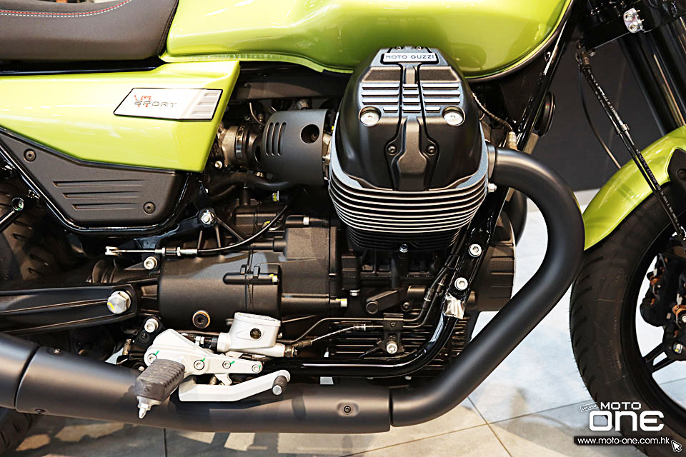 標誌性的 Moto Guzzi 90° 橫向風冷 V 型雙缸引擎配備推桿和搖臂分配,符合歐盟 5+ 標準。排氣量為 853 cc,在 6900 rpm 時輸出 67.3 hp,在 4400 rpm 時輸出 79 Nm 的扭矩,帶來動感十足的駕駛體驗,尤其是在低轉速和中轉速時。擴大的空氣箱、新的正時系統和最佳化的活塞冷卻迴路提高了性能和效率。
