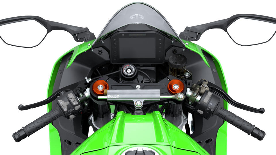 新車頭採用低燈投射式+高燈反射式 LED 組合,中央心型 Ram Air 進氣口改設於頭燈上方,與ZX-6R相同,兩邊均以黑色亮面飾件強調層次感。