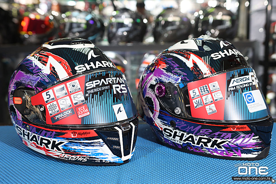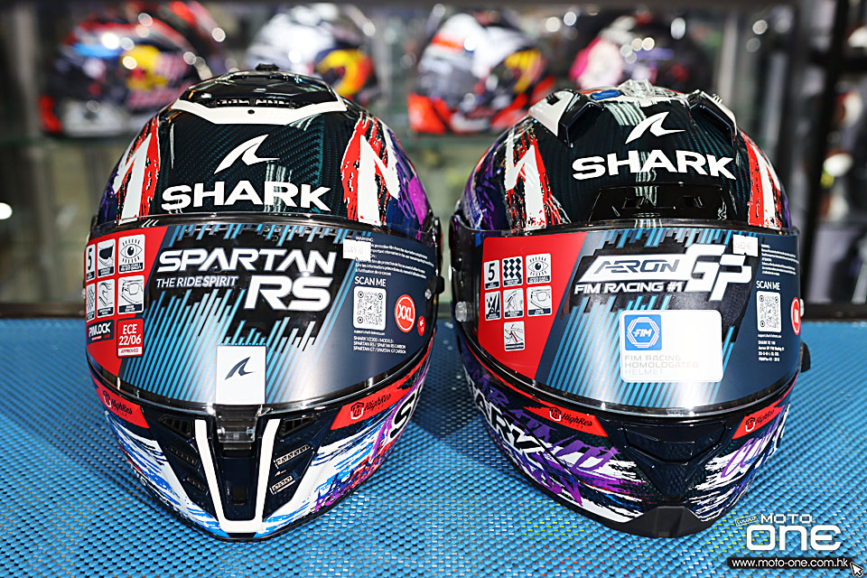 今次利力新返了沙高(Johann Zarco) x SHARK AERON GP FIM RACING #1 REPLICA ZARCO SIGNATURE 2025 - FIM 2 最新認證大尾翼賽車頭盔及SPARTAN RS CARBON ZARCO SIGNATURE碳纖維全面頭盔,兩款均以相同彩色藝術拉花設計,並備有沙高(Johann Zarco) MotoGP的JZ5編號,突顥他的專屬設計。