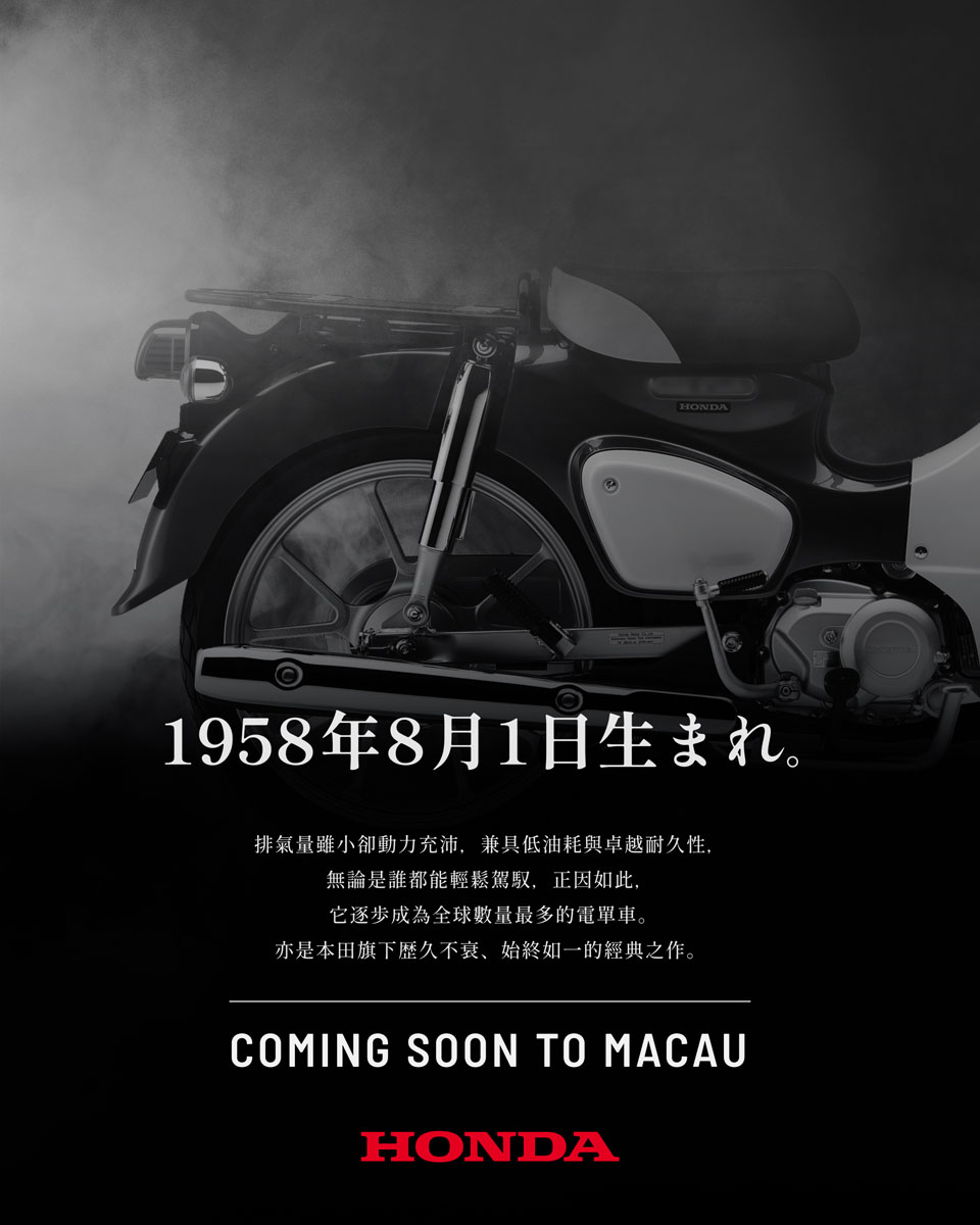 秉持「嚮應不同地區需求」的理念,全新 Super Cub 110 正式引入澳門,以兼具電單車動態性能與綿羊操控便利的獨特定位,滿足澳門用家對騎乘玩味與舒適通勤的雙重追求。
