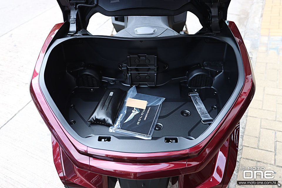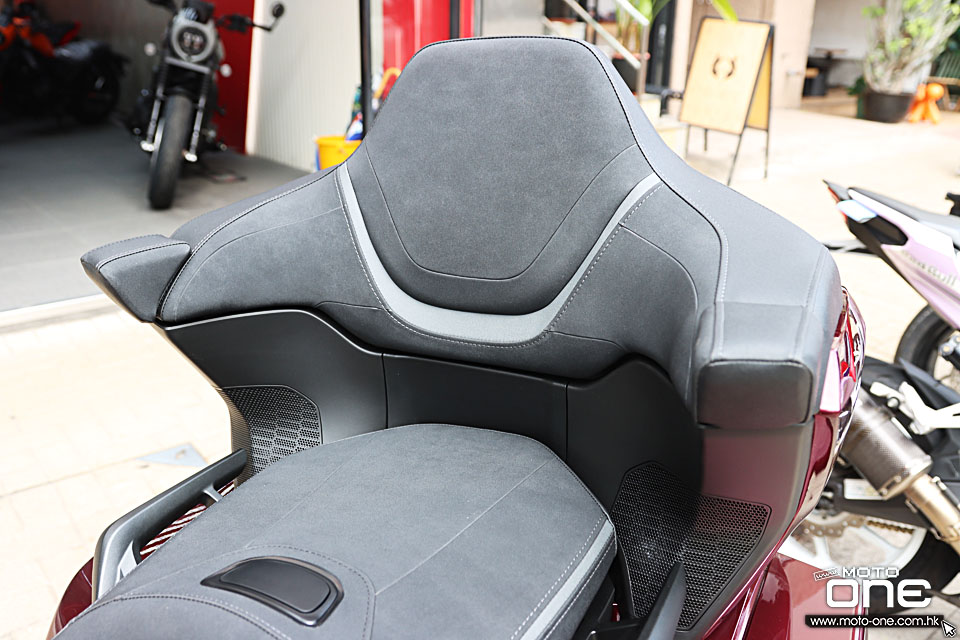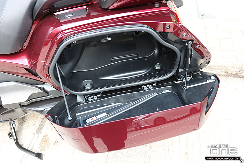 新款GOLD WING GL1800 Tour DCT 配備大尾箱容量為61升,比2020年款的50升尾箱,增加了11 升的容量,更為實用。而新款大尾箱頂部已新設預留安裝貨架的鑽孔位,無需像2020年要人手鑽孔,如安裝貨架更容易、位置更準確。新款乘客椅背座墊剪裁更立體更豪華,而乘客扶手空間更大,更就手。