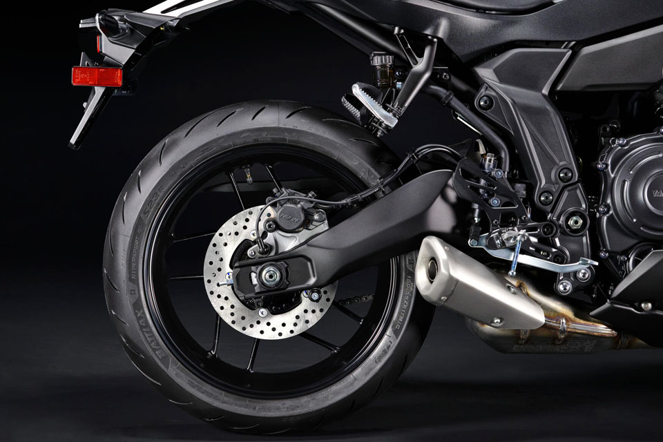 R7首次採用了Yamaha超輕量的 SpinForged旋壓鑄造輪框,製造方式與MT-07的輪框相同,不僅有效減輕了整體車重,更帶來更迅速、敏捷的操控反應。搭配上 Bridgestone S23輪胎,讓騎士駕駛時更有信心。